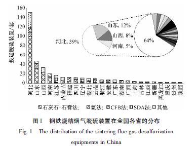 控制燒結工序SO2排放主要有三種方法:原料控制、燒結過程控制和燒結煙氣脫硫,其中,燒結煙氣脫硫被認為是控制SO2污染比較切實可行的方法。煙氣脫硫工藝按脫硫產物的形態可分為濕法、半干法和干法三類。濕法脫硫是利用濕態吸收劑吸收煙氣中的SO2,脫硫產物為濕態,主要有石灰石-石膏法、氨法、雙堿法和氧化鎂法等。半干法脫硫是向反應器內噴入吸收劑漿液或者同時噴入吸收劑與水霧,利用煙氣顯熱蒸發吸收產物中的水分,比較終產物為粉狀,主要有循環流化床法(CirculatingFluidizedBed,CFB)、旋轉噴霧干燥法(SprayDryingAdsorption,SDA)等。干法脫硫是加入干態吸收劑,脫硫比較終產物為干態,主要有活性炭吸附法。