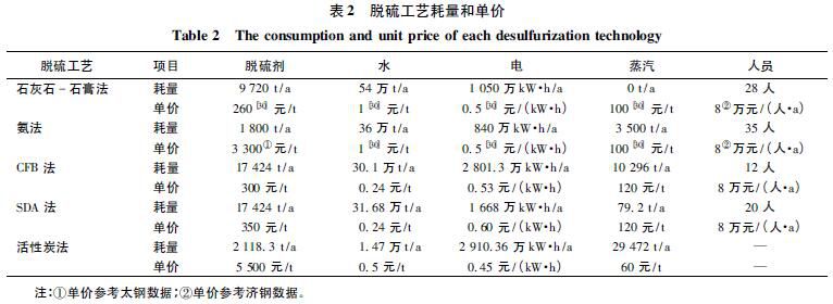 2.2燒結煙氣脫硫運行成本
