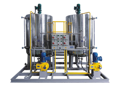 本裝置主要包括藥液計量泵系統、溶配系統、計量投加系統、安全系統和控制系統等五部分。