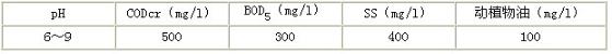 該企業污水處理后排入市政污水處理廠,必須達到污水排入城市下水道的水質標準,即GB8978-1996《污水綜合排放標準》表4中三級標準,主要污染物允許排放濃度如下: